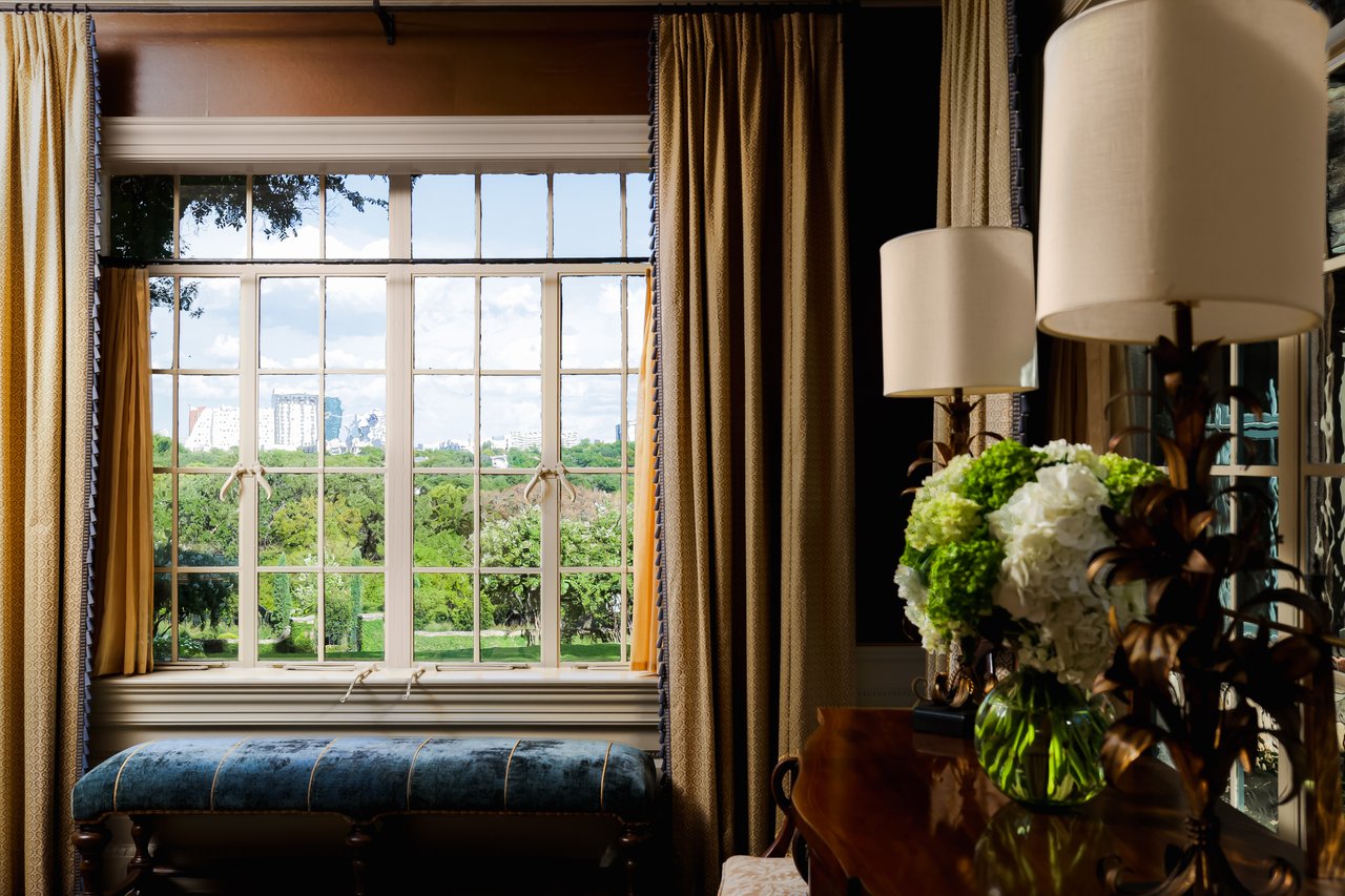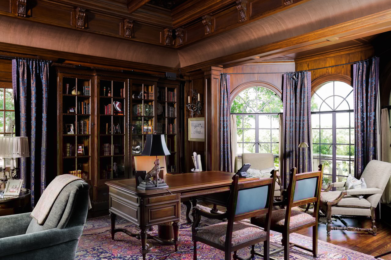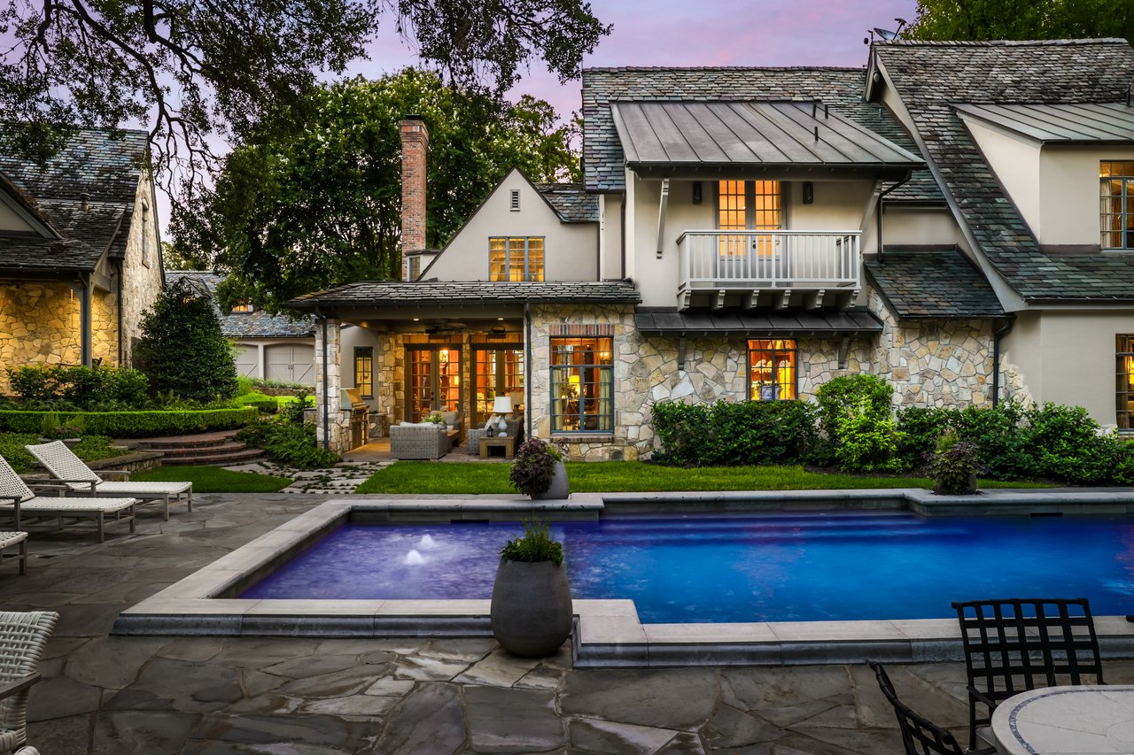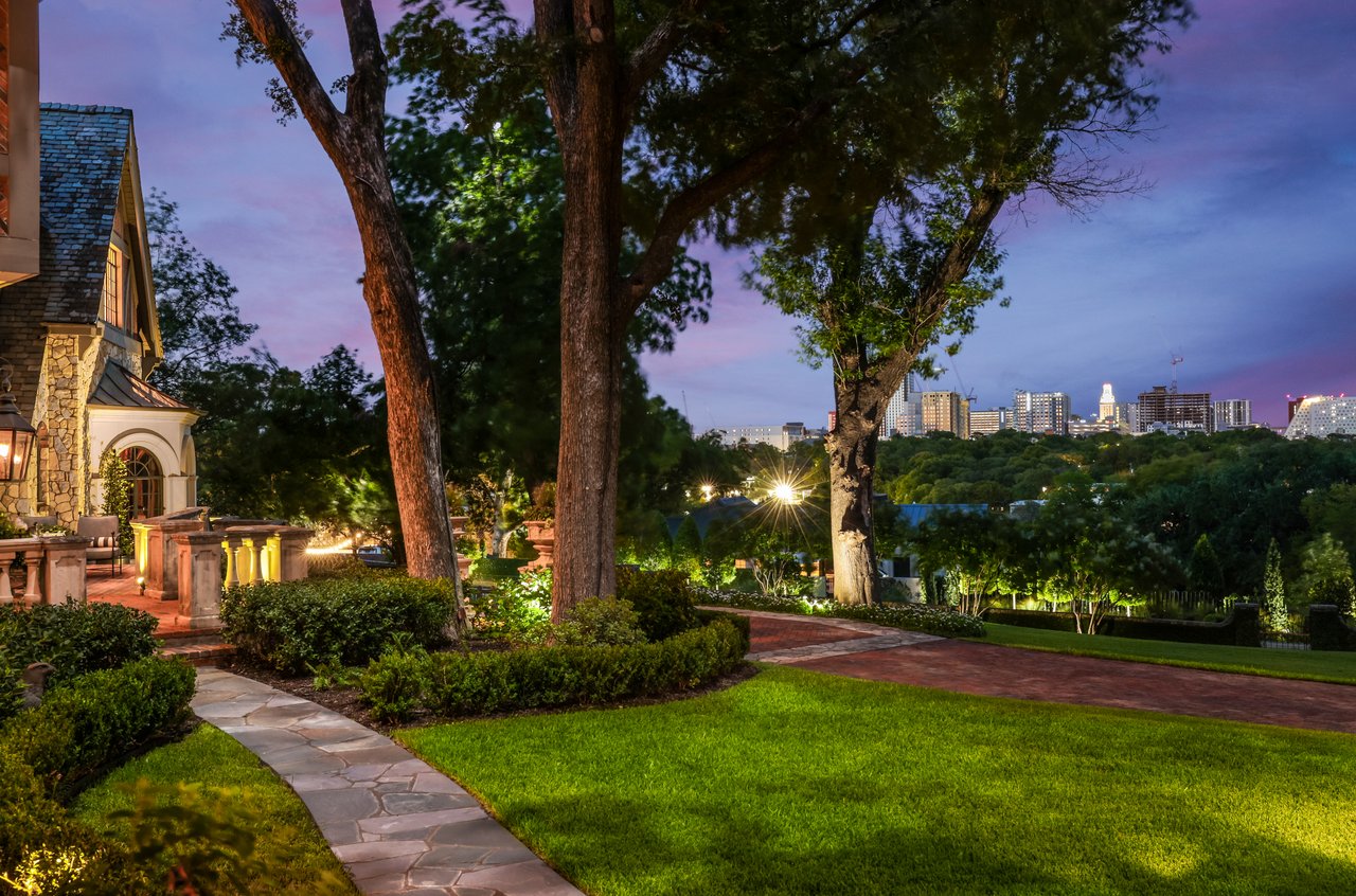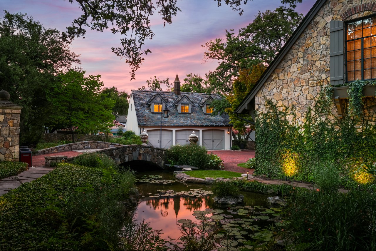 In total, the estate offers six bedrooms and six full plus four half baths across the compound. Extensive renovations over the decades have restored plaster walls, oak floors, copper gutters, and roofing while modernizing systems for today’s standards of comfort. Outdoor living is equally extraordinary. A brick drive leads across a private stone bridge spanning a koi pond, reinforcing the estate’s storybook setting. The freestanding conservatory captures city views and provides a dramatic venue for gatherings, while manicured grounds unfold with garden pathways, mature landscaping, and a swimming pool designed in the style of an English fountain. This Windsor Road estate represents one of Austin’s most architecturally significant and visually compelling residential offerings.