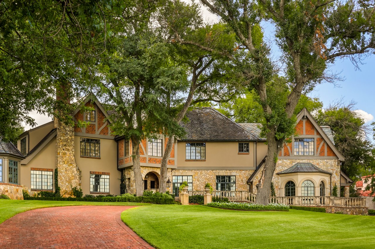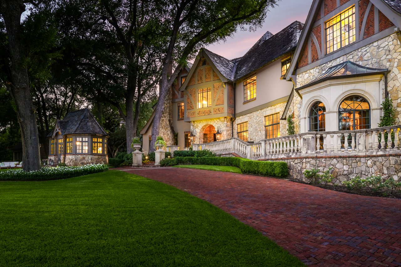 2208 Windsor Road is a renowned 1927 Tudor estate in the heart of Old Enfield, nestled on ~1.13 picturesque, gated acres. Originally designed by notable architect Edwin F. Kreïsle, the property evokes an English garden compound with five free-standing structures enclosed by fieldstone walls: the main residence, guest house, garage apartment, gate house, and a glass conservatory. Steeply pitched slate roofs, ornamental half-timbering, elaborate chimneys, and hand-forged ironwork establish a sense of arrival that feels transported from another era, while panoramic views stretch from the University of Texas Tower to the State Capitol and Downtown Austin.